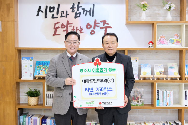 이번 기탁에는 양주검준패션칼라사업협동조합(조합장 유인재)과 양주패션칼라산업단지입주기업체협의회(이사 유인재)가 각각 성금 500만 원씩 총 1,000만 원을 기부했으며, 대광프린트무역㈜(대표 유인재)와 성보섬유(대표 김형식)는 라면 각 250박스씩 총 500박스(600만 원 상당)를 전달하며 나눔에 동참했다.