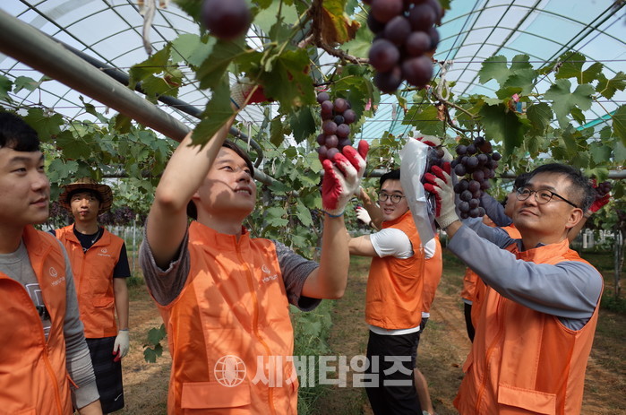 [세계타임즈 이채봉 기자]한화는 지난 8일 충남 천안시 서북구 입장면을 찾아 농가 포도 수확을 돕고, 수확한 포도를 농가로부터 직구매하여 중구 및 서대문구 지역 내 어르신들에게 기부하는 도농연계 사회공헌활동을 펼쳤다고 10일 밝혔다.
