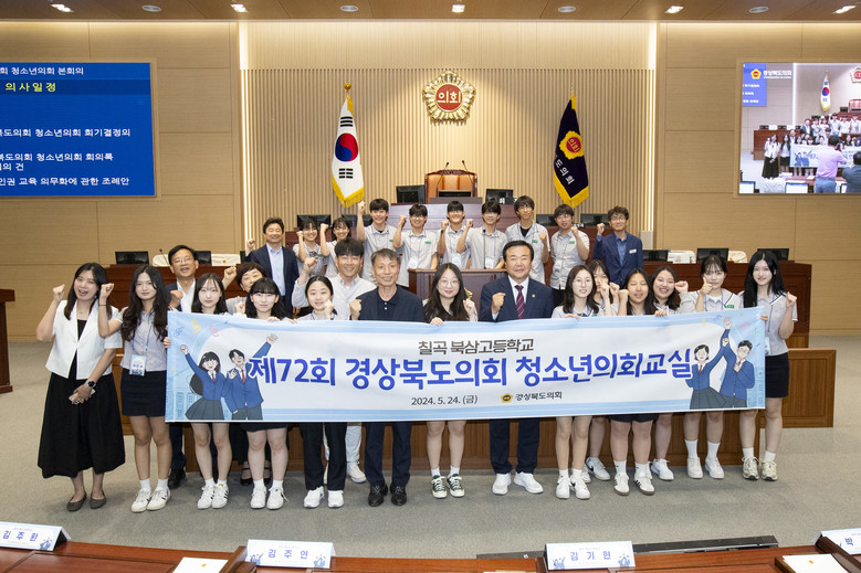 [경북 세계타임즈=한윤석 기자] 경북도의회(의장 배한철)는 5월 24일 경상북도의회 본회의장에서 칠곡 북삼고등학교 2학년 학생 19명과 지도교사가 참여한 가운데 제72회 경상북도의회 청소년의회교실을 개최했다.
