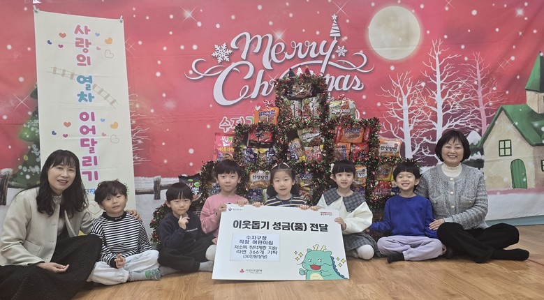 ■ 수지구청 직장어린이집(원장 이영애)은 지난해 12월 29일 어려운 이웃에 전달해 달라며 라면 366개를 기탁했다. 이영애 원장은 “아이들이 직접 보고 느끼는 나눔의 기쁨을 통해 진짜 크리스마스의 의미를 느낄 수 있었을 것”이라고 했다.