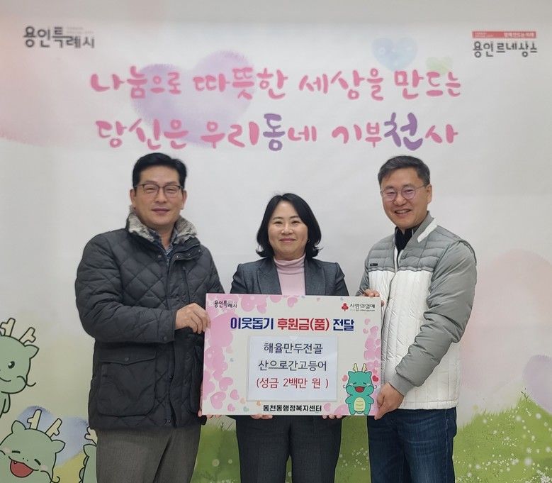 ■ 죽전3동통장협의회 최유풍 회장은 지난해 12월 30일 어려운 이웃을 돕기 위해 현금 50만원을 죽전3동에 기탁했다. 최유풍 회장은 “작은 정성이지만 도움이 필요한 이웃들에게 따뜻한 위로가 되길 바란다”며 “앞으로도 지역사회와 함께하는 나눔을 계속 이어가고싶다”고 했다.
