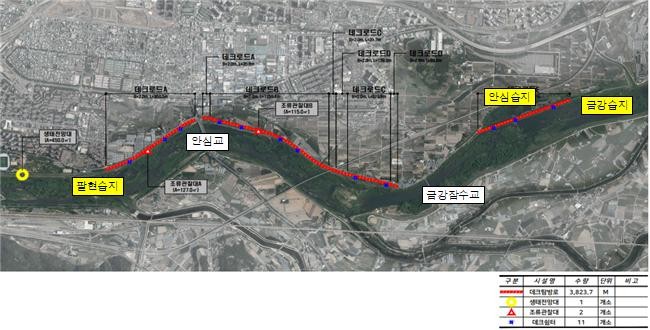 해당 구간에는 시민들이 생태, 역사, 문화자원을 쉽게 접하고, 안전하게 탐방할 수 있도록 산책로, 생태탐방로, 조류관찰대, 전망대, 휴게 쉼터 등이 설치됐다.