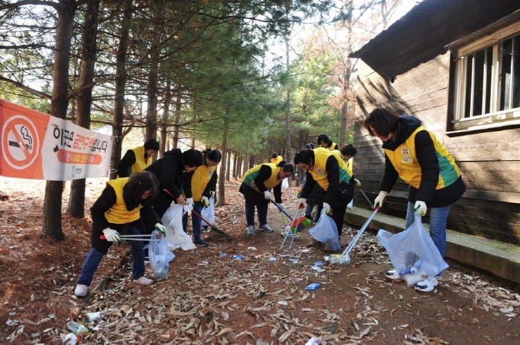봉사단은 공원에서 종량제(100ℓ) 봉투 4개, 120kg 포대 24개(2800kg) 분량의 낙엽과 쓰레기를 수거했다.