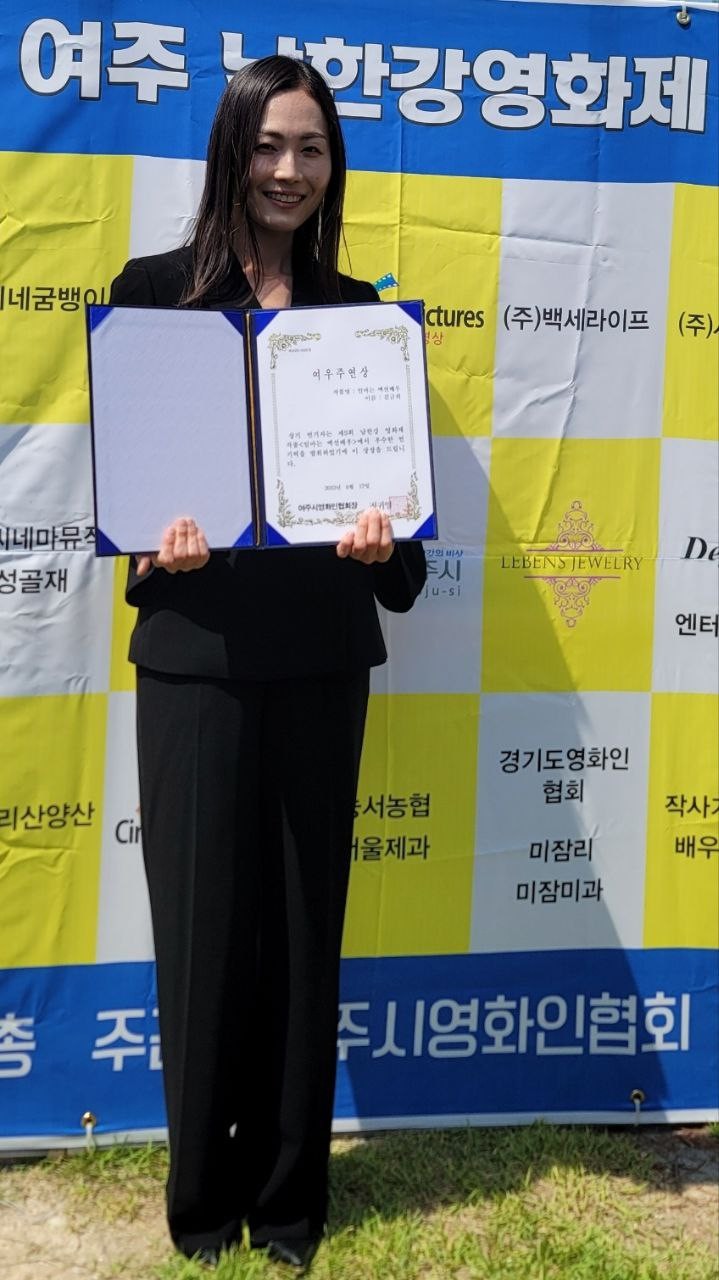 [세계타임즈 백진욱 기자] 떠오르는 신예배우 김금희가 단편영화 '엄마는액션배우'로 지난 16일에 열린 제9회 여주남한강영화제에서 여우주연상을 수상했다.