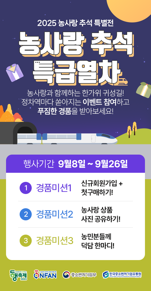 충남농사랑 추석 기획전 행사 품목으로는 한산소곡주, 홍로 사과, 배 등 농산물과 버섯·참기름·전통주 세트 등 가공 선물 세트등 다양한 품목과 선물하기 용이한 상품 등을 최대 20% 할인판매 할 예정이다.