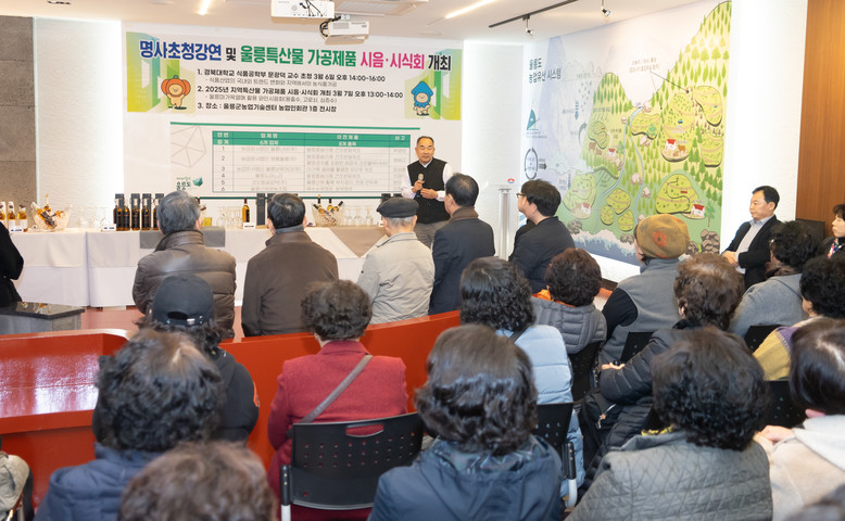 [울릉군 세계타임즈=한윤석 기자] 울릉군은 3월 7일 농업기술센터 농업인회관에서 울릉도 특산물 가공제품 시음·시식회를 개최하였다.