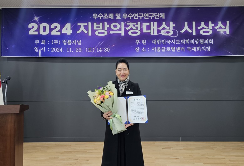법률저널이 주최하고 대한민국 시도의회의장협의회가 후원한 2024 지방의정대상은 엄격한 공적 심사를 통해 원칙과 공정의 가치를 실현하며 우수한 의정활동을 펼친 지방의회의원과 연구단체를 선정했다고 밝혔다. 정책연구 부문은 광역 4개, 기초 10개의 연구단체를 선정했다.