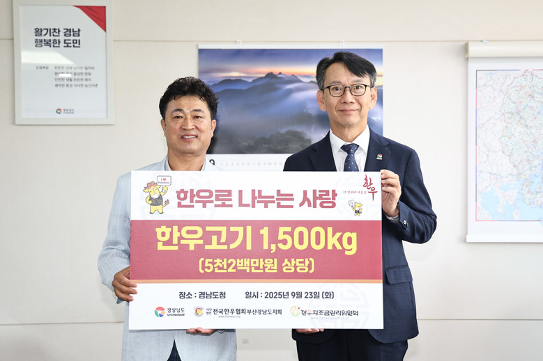 - 10월 2일까지 도내 사회복지시설 170개소에 전달 [세계타임즈=경남 최성룡 기자] 경상남도(도지사 박완수)는 23일 오전 10시 경남도청에서 추석 명절을 맞아 전국한우협회 부산경남도지회(지회장 한기웅)에서 5천2백만 원 상당의 한우고기를 기탁했다고 밝혔다.