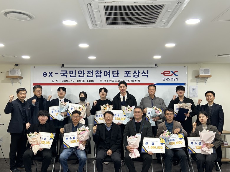 [세계타임즈 = 이영진 기자] 한국도로공사(사장 함진규)는 12일(금) 중대시민재해* 예방을 위한 2025년 국민안전참여단(이하 ’참여단‘)의 우수활동자를 포상했다고 밝혔다.