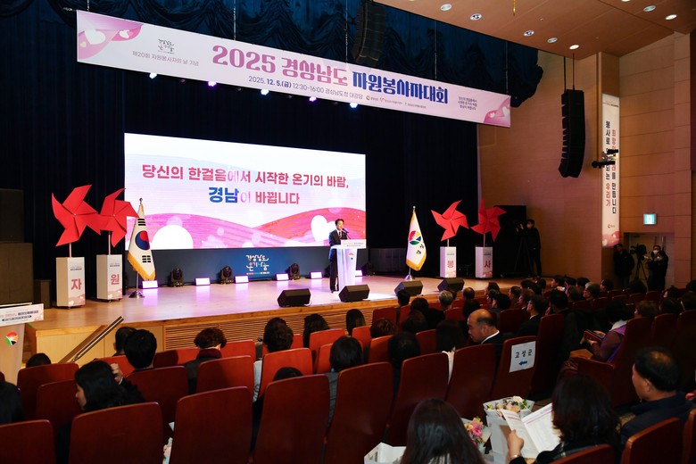 [경남 세계타임즈=최성룡 기자] 경상남도의회 최학범 의장은 12월 5일, 도청에서 열린 ‘2025 경상남도 자원봉사자대회’에 참석해 자원봉사자들을 격려하고 유공자 수상자들에게 축하를 전했다.