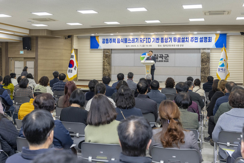 [칠곡군 세계타임즈=한윤석 기자] 칠곡군은 지난 7일 군청 강당에서 공동주택 음식물쓰레기 RFID 종량기 무료 설치사업 관련 주민설명회를 개최했다고 밝혔다.