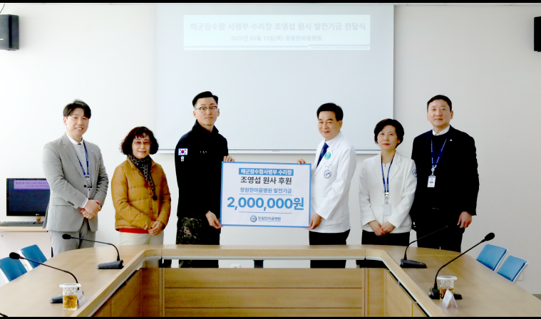[세계타임즈]최성룡기자 = 창원한마음병원(이사장 최경화)은 해군잠수함사령부 수리창 소속 조영섭 원사가 창원한마음병원에 발전기금 200만 원을 후원했다고 19일 밝혔다.