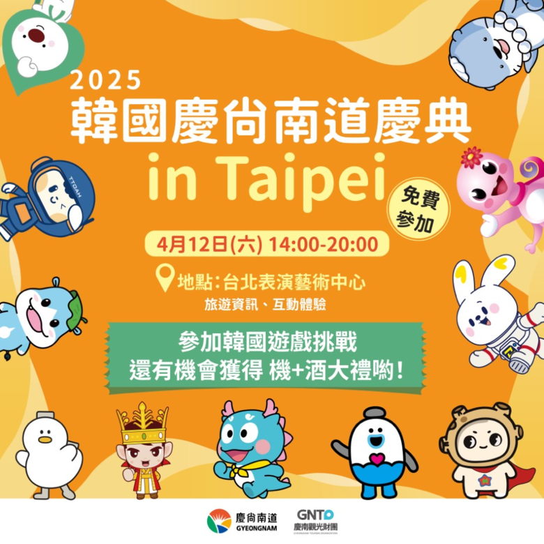 이와 함께 익스피디아(Expedia) 대만지사와 현지 여행사들도 공동 홍보 부스를 운영해 경남 여행상품 및 숙박 예약 정보를 제공하며, 현장 예약 유도에도 나선다. 김해 롯데호텔앤리조트와 이스타항공은 항공권 및 숙박권을 후원해 이벤트 경품으로 제공함으로써 행사 효과를 극대화할 계획이다.