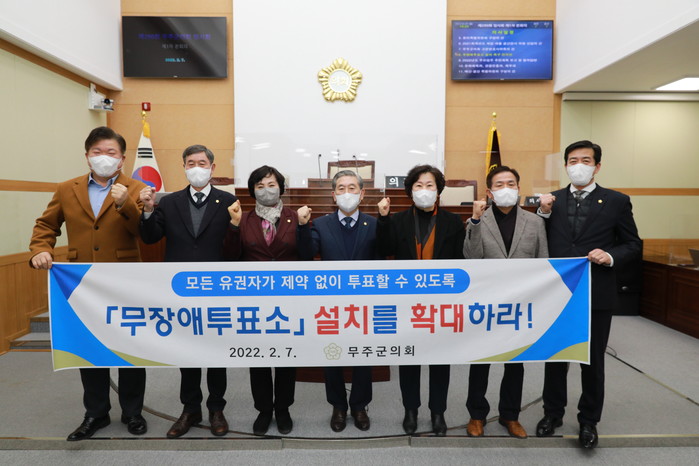 무주군의회는 지난 7일 열린 제290회 무주군의회 임시회에서 이해양 의원이 대표발의 한 「무장애 투표소 실현 촉구 건의안」을 의원 만장일치로 채택했다.