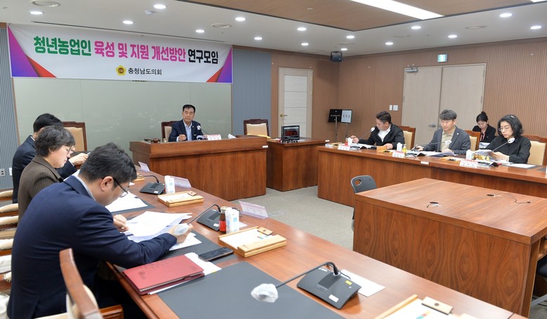 도의회 ‘청년농업인 육성 및 지원 개선방안 연구모임’(대표 방한일)은 19일 의회 회의실에서 발족식과 함께 첫 회의를 열고, 현재 충남도 청년농업인을 위한 정책 현황, 청년농업인 육성 방안, 지역사회 공헌도 분석을 통한 지원체계 구축 등에 대해 논의했다.