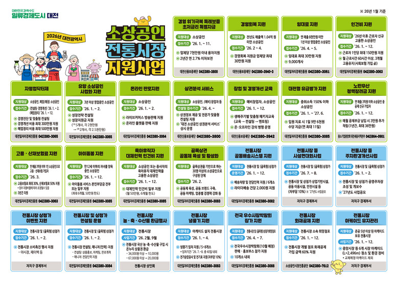 이장우 대전시장은 “올해 소상공인 지원사업은 신속한 지원, 신청 편의성, 현장 체감도를 핵심으로 추진하겠다”며 “신청 절차를 최대한 간소화해 소상공인이 장사에만 집중할 수 있는 환경을 만들고, 전통시장과 상점가에 활력이 돌도록 최선을 다하겠다”고 강조했다.