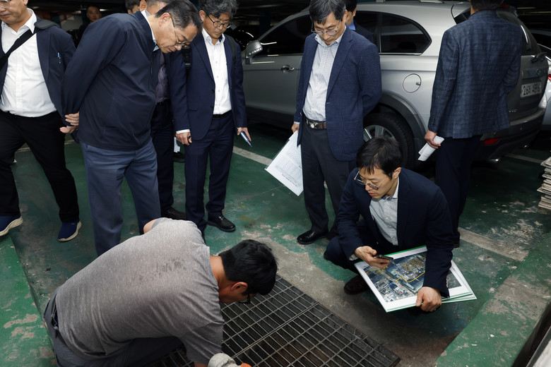 점검단은 ▲ 배수로 준설 상태 ▲ 기계실 침수 예방 설비 ▲ 방화문 폐쇄 여부 ▲ 옥상 출입문 자동 개폐 장치 작동 ▲ 피난 유도선 설치 상태 등 화재 및 풍수해 대비 시설을 면밀히 점검했다.