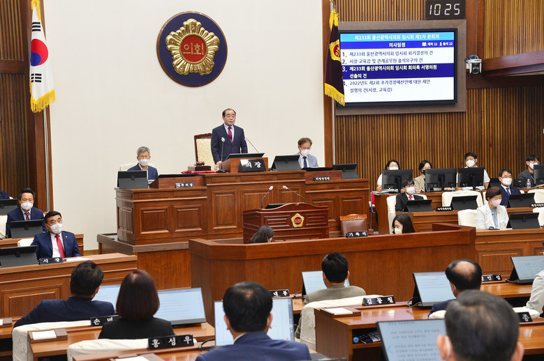 [울산 세계타임즈=이호근 기자] 울산광역시의회(의장 김기환)가 8월 26일부터 9월 2일까지 8일간의 일정으로 제233회 임시회를 개회했다.
