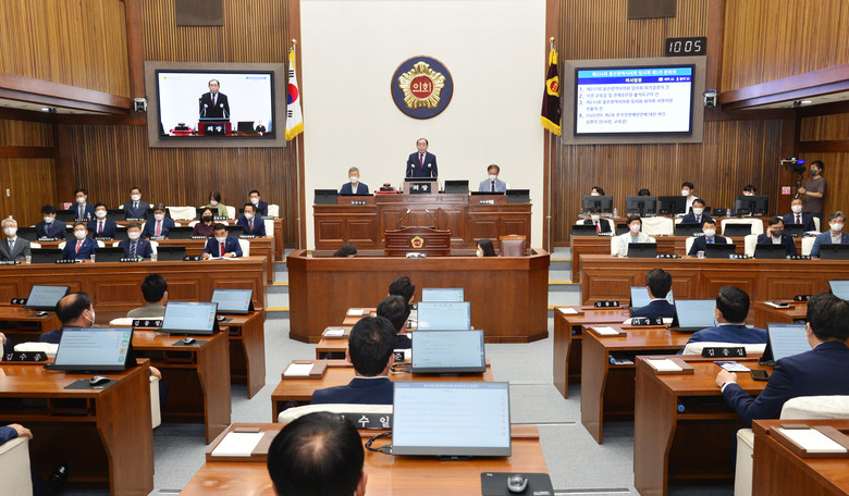 이날 본회의는 개회식, 신임 간부공무원 소개, 5분 자유발언, 안건심의, 시장과 교육감의 추가경정예산안 제안설명 등으로 진행됐다.