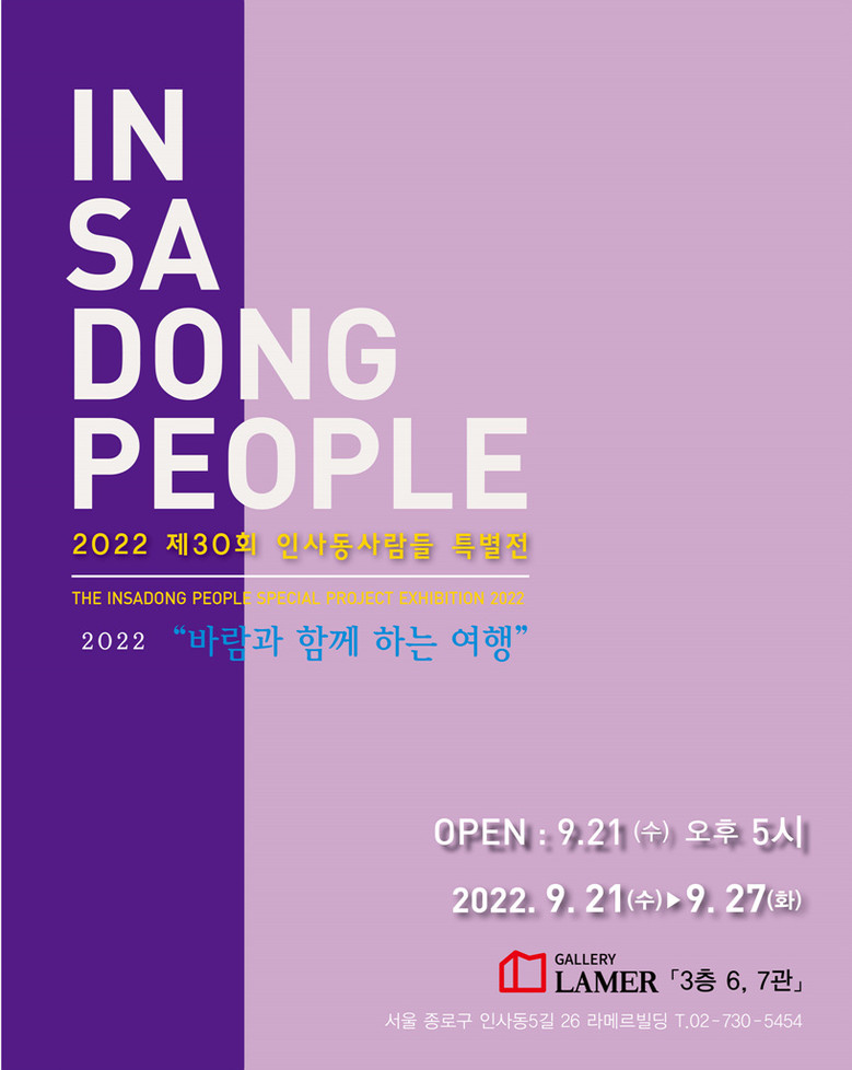 [세계타임즈=김광수 기자] 미술을 매개체로 소통하며 서로 성장할 수 있는 교류의 장을 전시회로 추진하는 중견 작가그룹 '인사동사람들'에서 '2022 제30회 인사동사람들 특별전'을 2022년 9월 21일(수) ~ 9월 27일(화)까지 서울 인사동 갤러리라메르에서 진행 중에 있다.