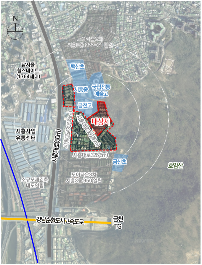 | ▲ 참고자료 : 위치도(금천구 시흥동 1005번지 일대 모아주택) |