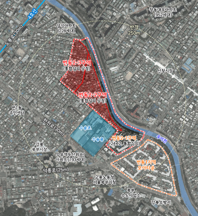 ② 강북구 번동 458-2 및 471-118 일대 모아주택, 우이천 수변공간과 연계한 주거단지 조성
