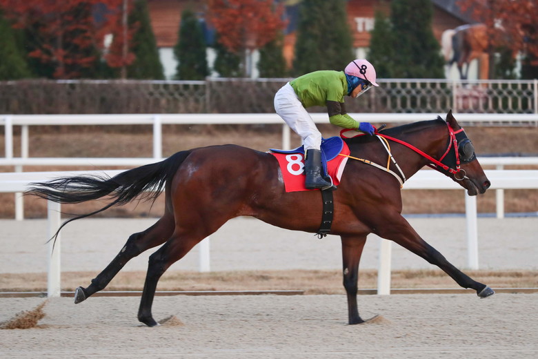 작년 ‘코리안더비(G1)’에서도 15번을 배정받아 후미에서 경주를 전개했으나, 직선주로에 접어들며 7마리를 따라잡는 놀라운 추입을 보여준 바 있다. 최근 3월 1400m 경주 역시 11번으로 출전했으나, 4코너를 돌며 바깥에서 빠르게 치고나와 ‘라온더스퍼트’에 이어 2위로 경기를 종료했다.