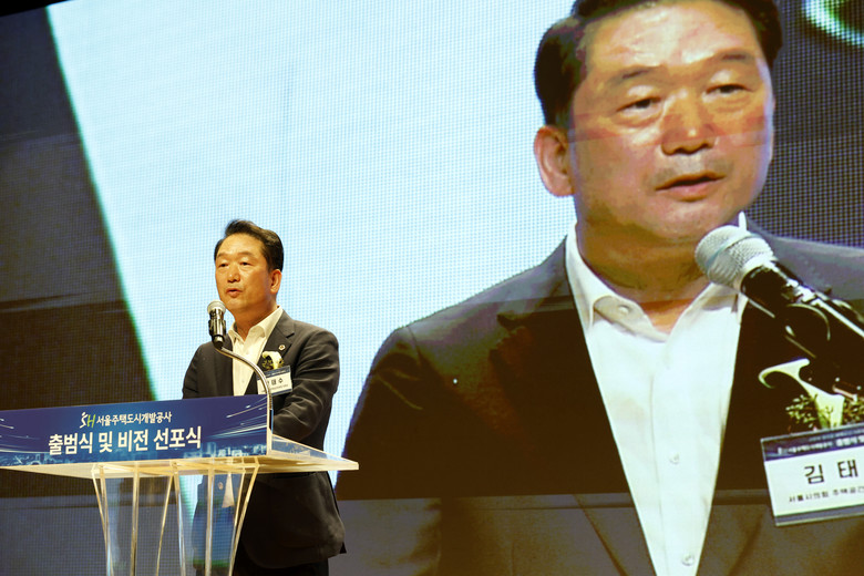 김태수 위원장은 이날 선포식 축사에서 “2025년 7월 11일 시민이 행복한 미래 서울을 위해 새롭게 출범하는 ‘서울주택도시개발공사’가 서울시민의 주거안정과 삶의 질 향상을 위해 변함없는 공사가 되기를 희망한다”면서, “황상하 사장과 임직원 모두 서울주택도시개발공사가 행복한 매력도시 서울을 만드는 도시 전문 공기업이 될 수 있도록 한마음 한 뜻으로 노력해주시길 바란다”고 당부했다.
