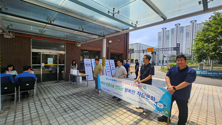 ‘존중과 배려의 직장 문화 정착’을 목표로 차별과 괴롭힘이 없는 직장 만들기 캠페인을 27일(금)은 대구교통공사노동조합과 함께 월배차량기지사업소에서, 30일(월)은 대구도시철도노동조합과 함께 문양차량기지사업소에서 실시했다.
