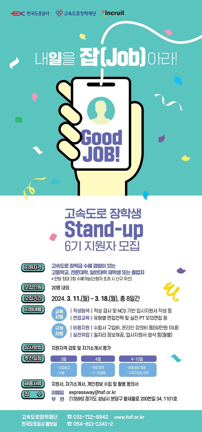 ‘Stand-up’ 프로그램은 고속도로 사고 피해자 또는 피해 가정의 자녀가 사회인으로 자립할 수 있도록 취업 활동을 지원하는 프로그램이다.