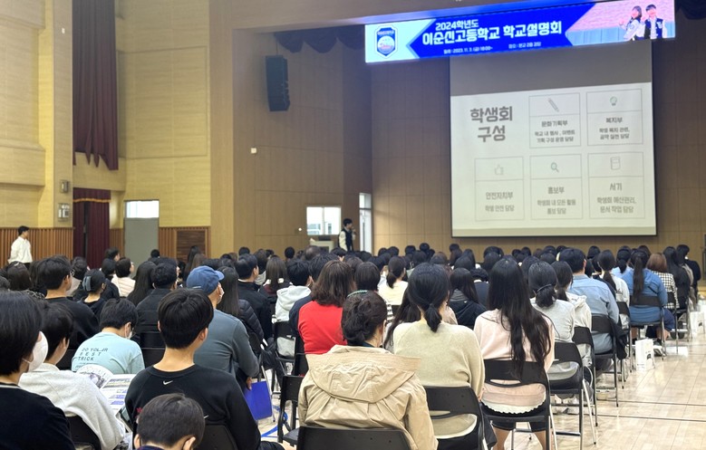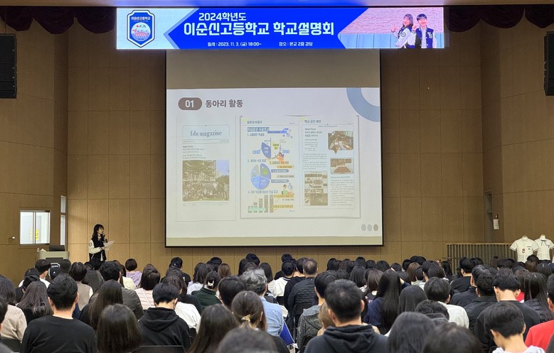 [아산시 세계타임즈=백택기 기자] 이순신고등학교(교장 김태균)는 11월 3일 18시 중학교 학생과 학부모(보호자)들을 대상으로 2024학년도 입학설명회를 개최했다. 이 날 250여 명의 중학생과 학부모들이 참여하여 이순신고 진학에 대한 열정을 보여주었다.