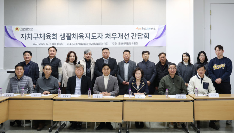[서울 세계타임즈=이장성 기자] 서울특별시의회 문화체육관광위원회 이종배 위원장 직무대리(국민의힘, 비례대표)를 비롯한 위원들은 지난 12월2일(화) 자치구체육회 관계자들과 간담회를 열고 생활체육지도자 처우개선과 호봉제 도입을 위한 의견을 수렴했다.