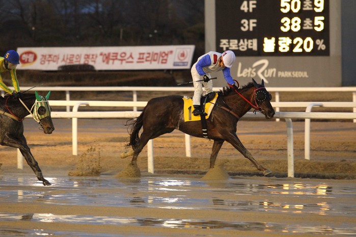 경주마 전성기가 지난 7세의 나이지만 지난해부터 매월 꾸준히 출전하며 녹슬지 않는 실력을 자랑한다. 특히 1400m 이하 단거리 경험이 37번으로 풍부해 관록으로 승부한다. 최근 2년 동안 받은 부담중량 중 가장 낮은 52.5kg를 배정받아 실력발휘가 기대된다.