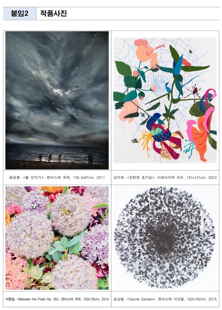 전시가 열리는 ‘선유도이야기관’은 과거 정수장의 침전지를 리모델링해 조성된 전시공간으로, 산업시설의 흔적과 자연의 재생이 공존하는 선유도공원의 상징적 장소다. 이번 전시는 이러한 공간적 특성과 자연을 주제로 한 작품들이 어우러져, 도심 속에서 자연과 예술의 관계를 새롭게 바라볼 수 있도록 구성했다.