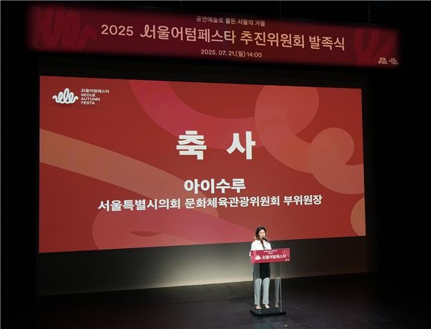- ‘서울어텀페스타’로 더 많은 시민이 예술을 가까이, 함께 연결되는 따뜻한 공동체 기대 [서울 세계타임즈=이장성 기자] 서울특별시의회 시의원 아이수루 문화체육관광위원회 부위원장(더불어민주당·비례)이 21일(월) 오후 3시, 종로구 동숭길 서울문화재단 대학로센터 일대에 위치한 ‘대학로극장 쿼드’에서 개최한 ‘2025 서울어텀페스타(’25.10.4.-11.12.) 추진위원회 발족식’에 참석해 자리를 빛냈다.