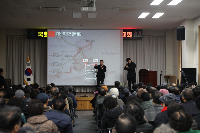 박덕흠 위원장은 옥천군 의정보고회에서 ▲ 옥천읍 폐철도 철거사업 ( 총사업비 335 억 상당 ) ▲ 대전 - 옥천 간 광역철도 ▲ 농식품부 농촌협약사업 ( 총사업비 380 억 상당 ) ▲ 옥천 복합문화센터 건립사업 ( 총사업비 248 억 상당 ) ▲ 옥천 다목적 체육센터 건립사업 ( 총사업비 182 억 상당 ) 등 옥천군의 숙원사업 예산 확보 및 진행 현황을 설명했다 .