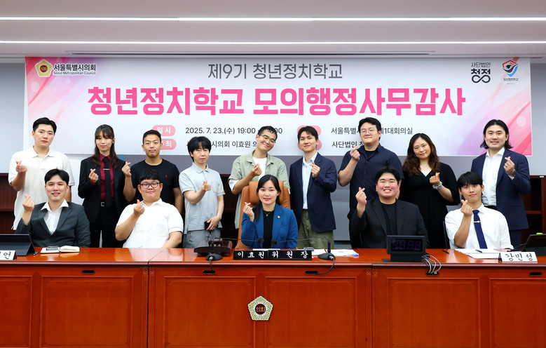 [서울 세계타임즈=이장성 기자] 서울특별시의회 이효원 의원(국민의힘, 비례)이 청년 정치참여의 마중물이 됐다. 지난 23일 서울시의회 제1대회의실에서 열린 ‘제9기 청년정치학교 모의행정사무감사’가 청년들의 뜨거운 참여 속에 성료했다. 해당 감사는 이효원 의원 주최, 사단법인 청정 주관으로 개최됐다.