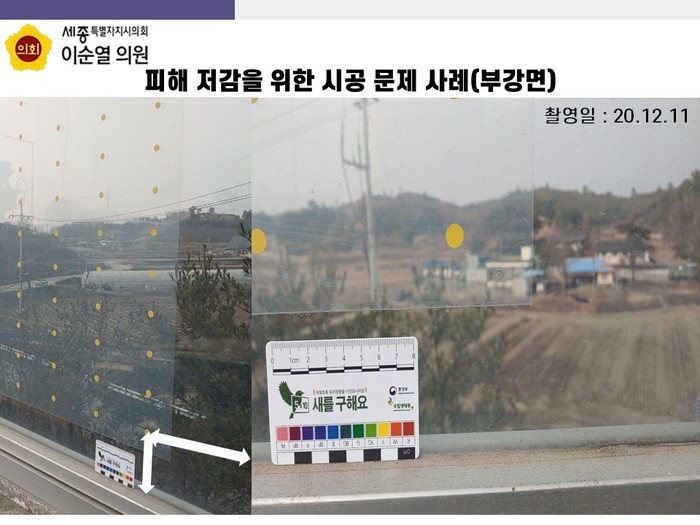 이에 이순열 의원은 환경부 지침에 근거한 조류 친화적 건물 조성을 위한 방법으로 그물, 창살, 셔터, 방충망 등의 구조물을 설치하거나, 불투명 유리로 교체 하는 방법 등을 소개했다.