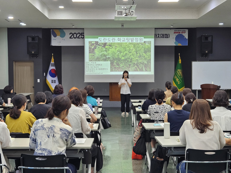 이번 연수에는 대구 관내 초등학교 교사 40명이 참여해 학교 텃밭 가꾸기, 교실 플랜테리어를 활용한 환경교육, 놀이 정원 활동, 수확물 활용 교육, 지속할 수 있는 농업 등 다양한 주제를 체험형 프로그램으로 익혔다.