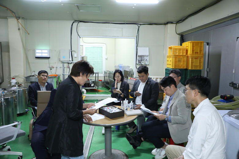 아울러, 지난 6월 전동면 솔티마을이 생산·납품하는 과채주스에서 납이 기준치를 초과하여 검출된 사안과 관련하여 조치 현황을 점검하고자 생산 현장을 방문했다.