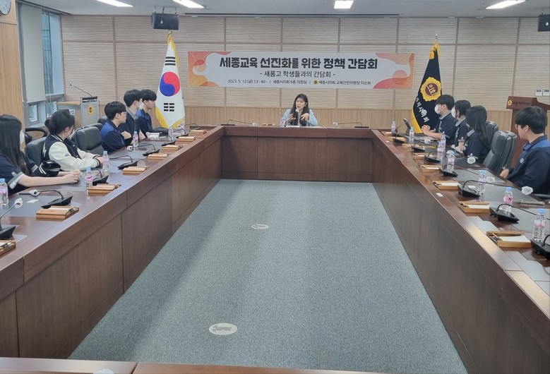 [세종 세계타임즈=이채봉 기자] 세종특별자치시의회 교육안전위원회 이소희 위원장(비례대표, 국민의힘)은 지난 12일 세종교육 선진화를 위해 새롬고 학생들과 정책간담회를 개최했다.