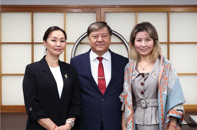 | ▲ 키르기즈스탄 국립오페라 발레극장 극단장(가운데), 예술감독(좌측), 아이수루 시의원(우측) |