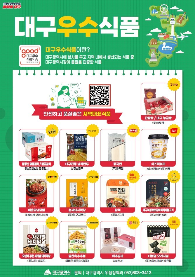 ▸ 지역 대표 우수식품 인지도 제고 및 해외시장 진출 교두보 마련 [세계타임즈=대구 한윤석 기자] 대구광역시는 10월 29일(수)부터 11월 1일(토)까지 서울 코엑스에서 열리는 국내 최대 식품박람회 ‘2025 푸드위크 코리아’에서 대구우수식품 홍보관을 운영하며, 지역 식품산업의 경쟁력을 선보인다.