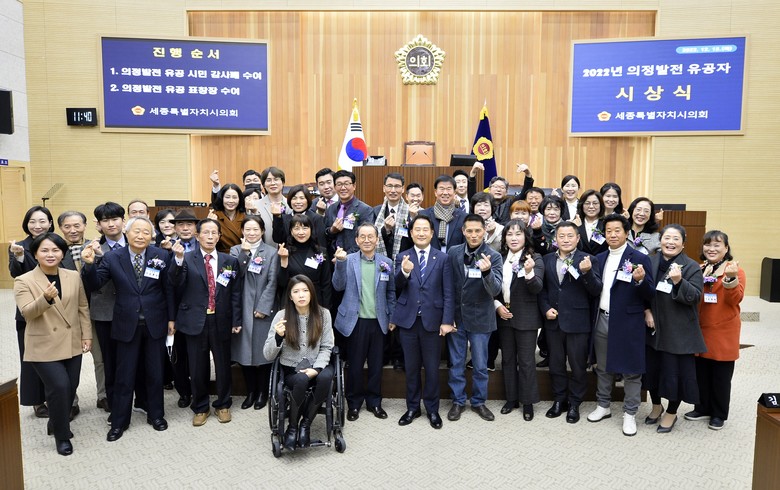 한편, 세종시의회는 폐회 직후 의정발전 유공 시상식을 개최하고 한 해 의정 발전에 기여한 지역 주민 28명과 관계기관 공무원 5명에게 각각 감사패와 표창장을 수여했다.