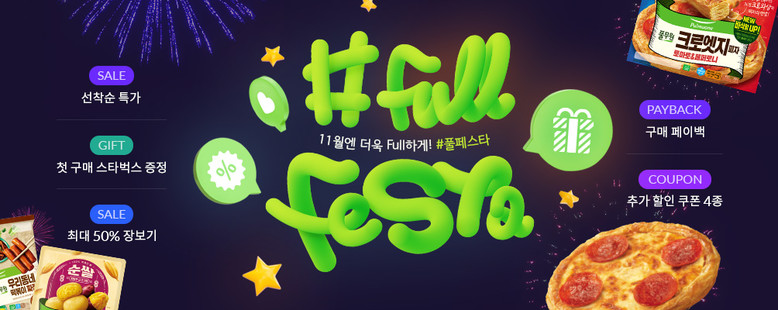 ‘#풀페스타’는 1+1 및 최대 50% 할인 특가 프로모션으로 풀무원 크로엣지 피자 등 인기 간편식 제품, 올가홀푸드 환절기 건강 제품, 가을 제철 신선 제품 등 인기상품을 합리적인 가격에 만나볼 수 있다.