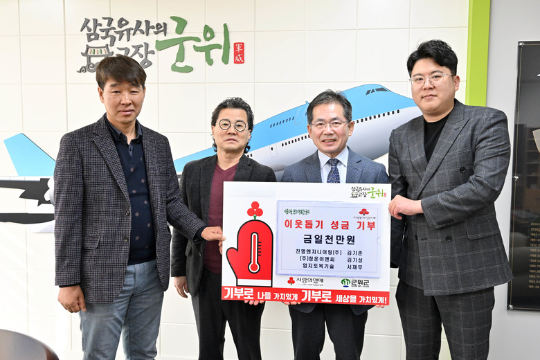 일천만원을 기부한 업체는 진명엔지니어링㈜(대표 김기준), ㈜청운이앤씨(대표 김기성), ㈜엄지토목기술(대표 서재무)로 평소 군위군 지역사회 발전을 위해 다방면으로 공헌하는 기업들이다.