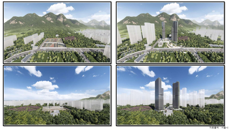 | ▲ 불암산 힐링타운 주변 개발 전후 조감도<개발 전(좌)과 개발 후(우)> |