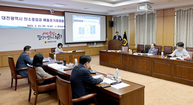 [대전 세계타임즈=이채봉 기자] 대전시의회 복지환경위원회는 안경자 의원(국민의힘, 비래) 주재로 23일 의회 소통실에서 탄소중립 달성을 위한 ‘대전광역시 탄소중립과 배출권거래제를 위한 정책토론회’를 개최했다.