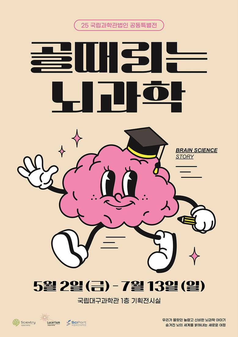 ‘골때리는 뇌과학’ 전시는 ▲인간의 뇌, ▲뇌와 생활, ▲뇌의 건강과 미래라는 세 가지 주제를 중심으로 뇌의 구조와 기능을 쉽고 흥미롭게 전달하는 체험형 전시로, 오는 7월 13일(일)까지 국립대구과학관에서 만나볼 수 있다.