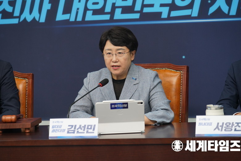 김선민 조국혁신당 대표 권한대행이 21일 국회 본청에서 열린 최고위원회의에서 발언하고 있다.